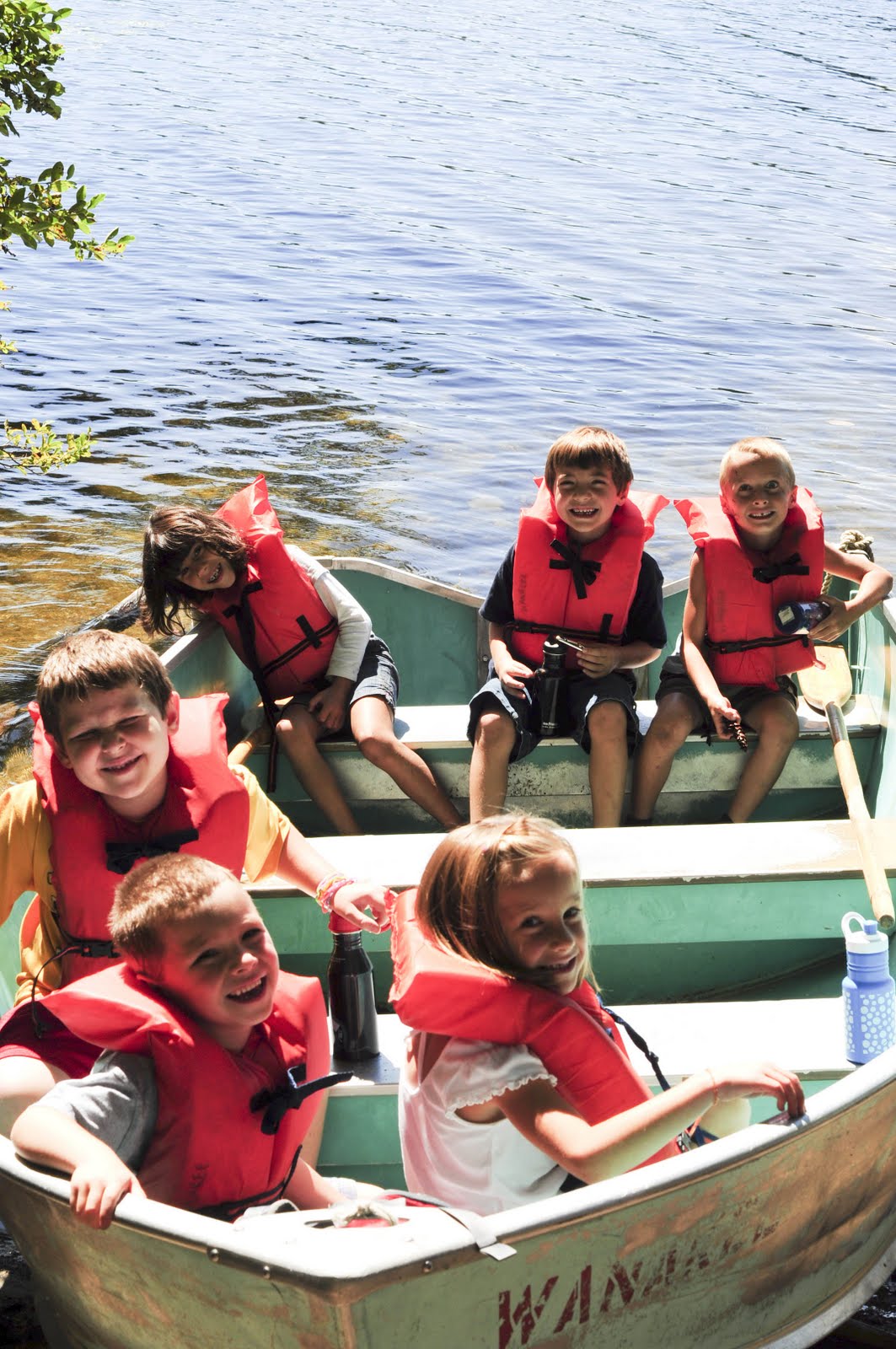 The next day we rowed the kids to Monkey Island. I only took this one photo as I was stung by a bee in my upper inner thigh and just did not feel like doing anything but a jig! It was a challenge for me to act like everything was cool in front of the kids when I really just wanted to pull down my shorts because it felt like there was a bee inside of them! Then I had to row six kids back to shore. The wind was blowing pretty hard at that point and kept turning my boat around. I struggled, but made it back safely!